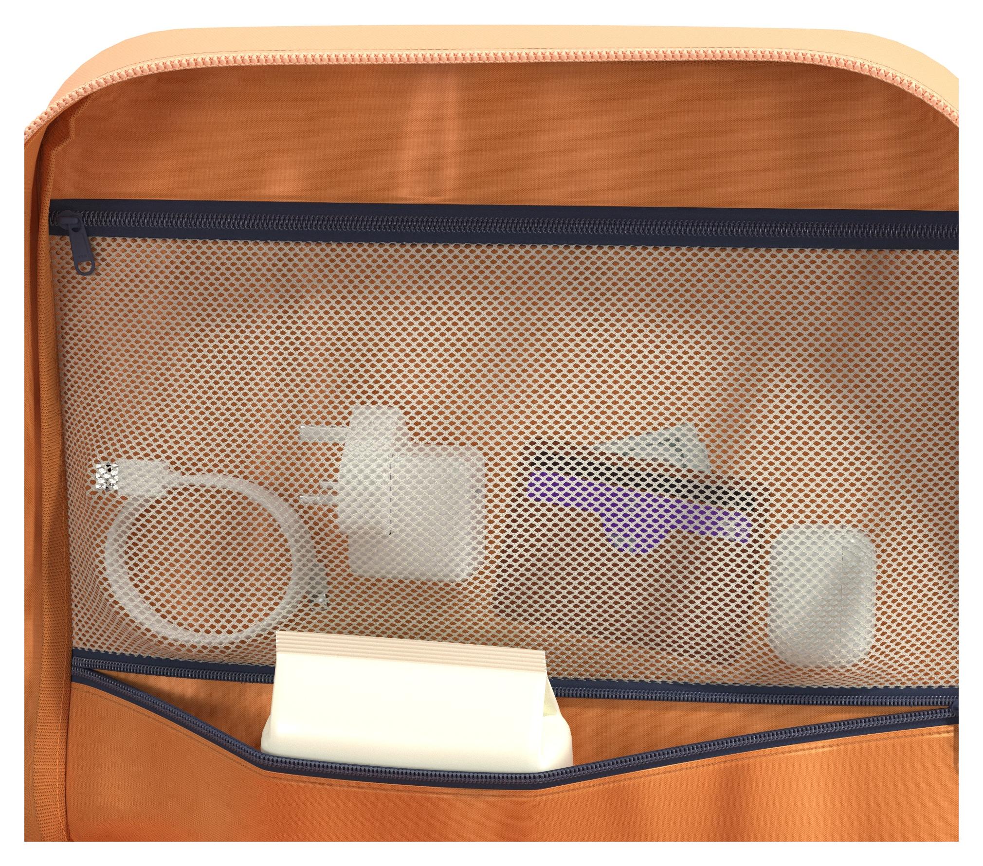 vnitřní kapsa ze síťoviny a látková kapsa na zip pro snadnější organizaci věcí
