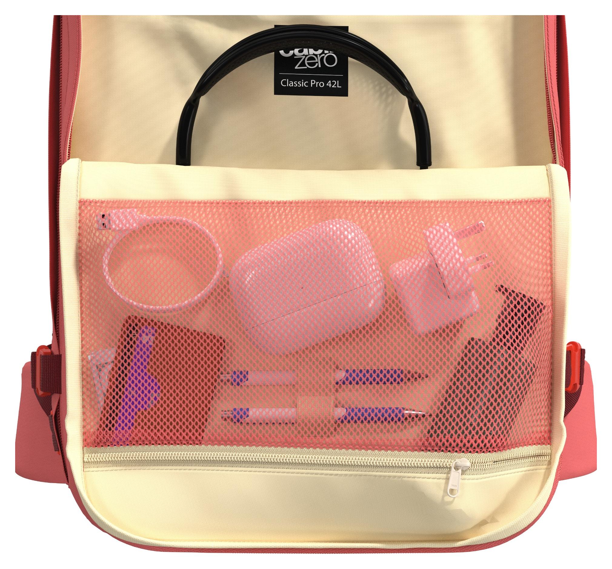 CabinZero Classic Pro je ultralehký batoh s několika kapsami, vnitřním organizérem a kapsou až na 17" notebook. Má polstrovaný bederní pás pro maximální pohodlí, který lze společně s ramenními popruhy během pár vteřin uschovat do kapsy za zádový panel tak, aby se batoh snadno vešel do příručního prostoru. Při cestování letadlem oceníte praktické kapsy usnadňující organizaci i uzamykatelné zipy u hlavní komory.