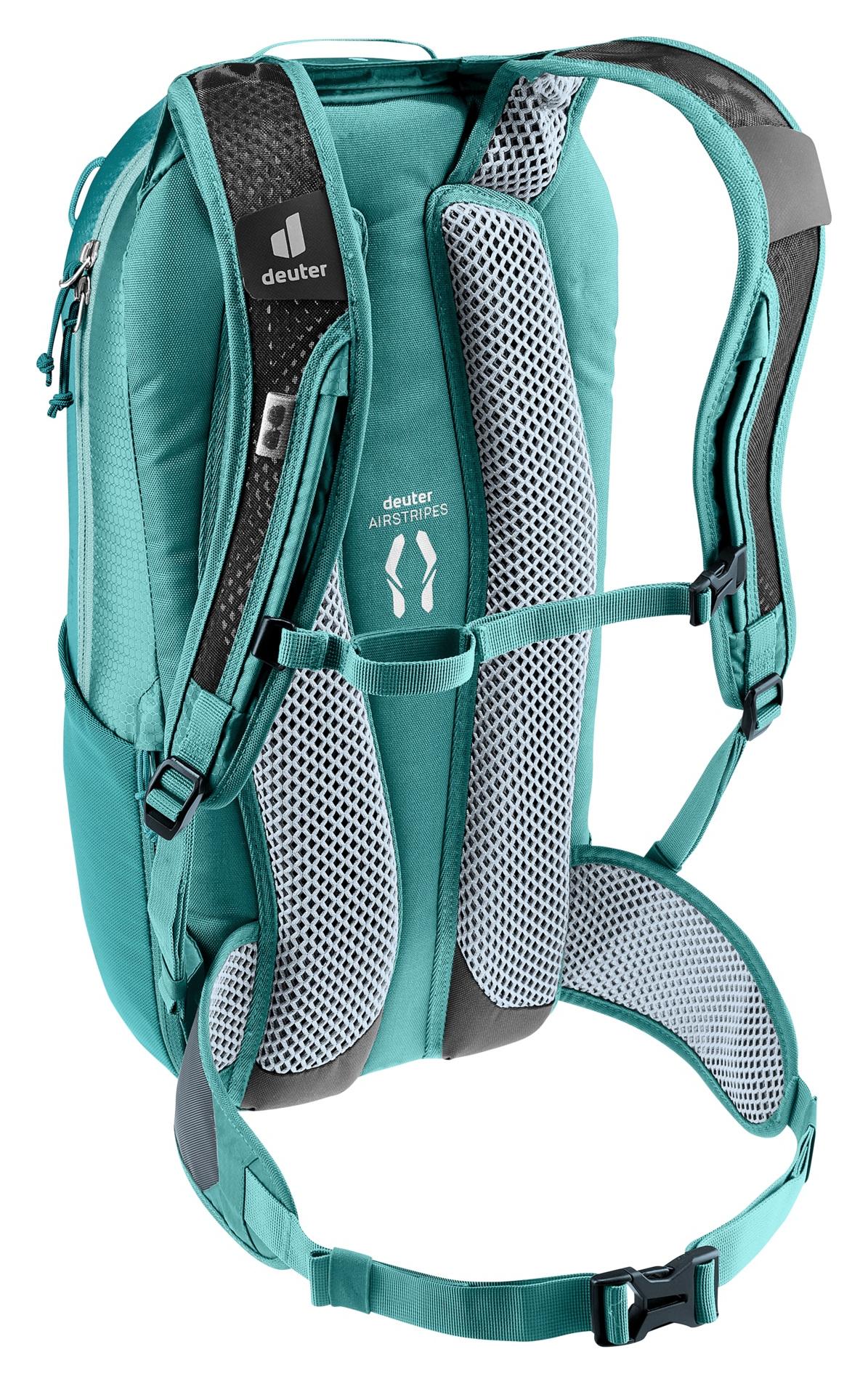 Zádový systém AirstripesZáda batohu jsou vyrobena ze dvou tvarovaných pěnových pruhů se vzduchovými kanálky. Mezera mezi oběma pruhy vytváří „komínový“ efekt. Minimální kontaktní plocha zádového systému Airstripes umožňuje efektivní cirkulaci vzduchu a maximální možné odvětrávání.