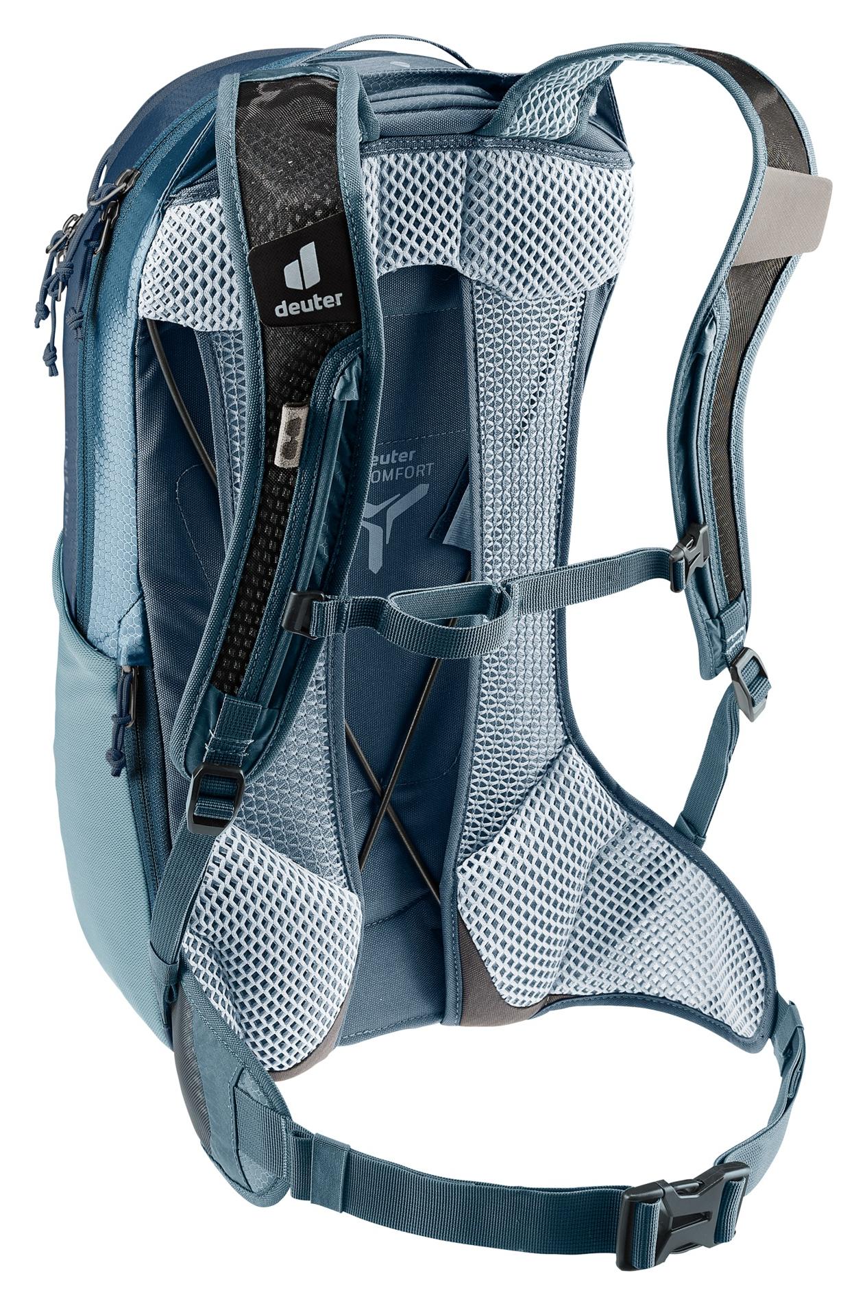Stejně jako batohy z řady Race vyniká cyklistický batoh Deuter Race Air přehledně řešeným úložným prostorem, nízkou gramáží a vysokým komfortem při nošení. Díky tomu je vhodný jako každodenní společník při vašich vyjížďkách na horském i silničním kole. Špičkový zádový systém Aircomfort s otvorem uprostřed účinně kombinuje síťovinu s pěnovým polstrováním, a zajišťuje tak vynikající ventilaci a optimální rozložení hmotnosti batohu na zádech.