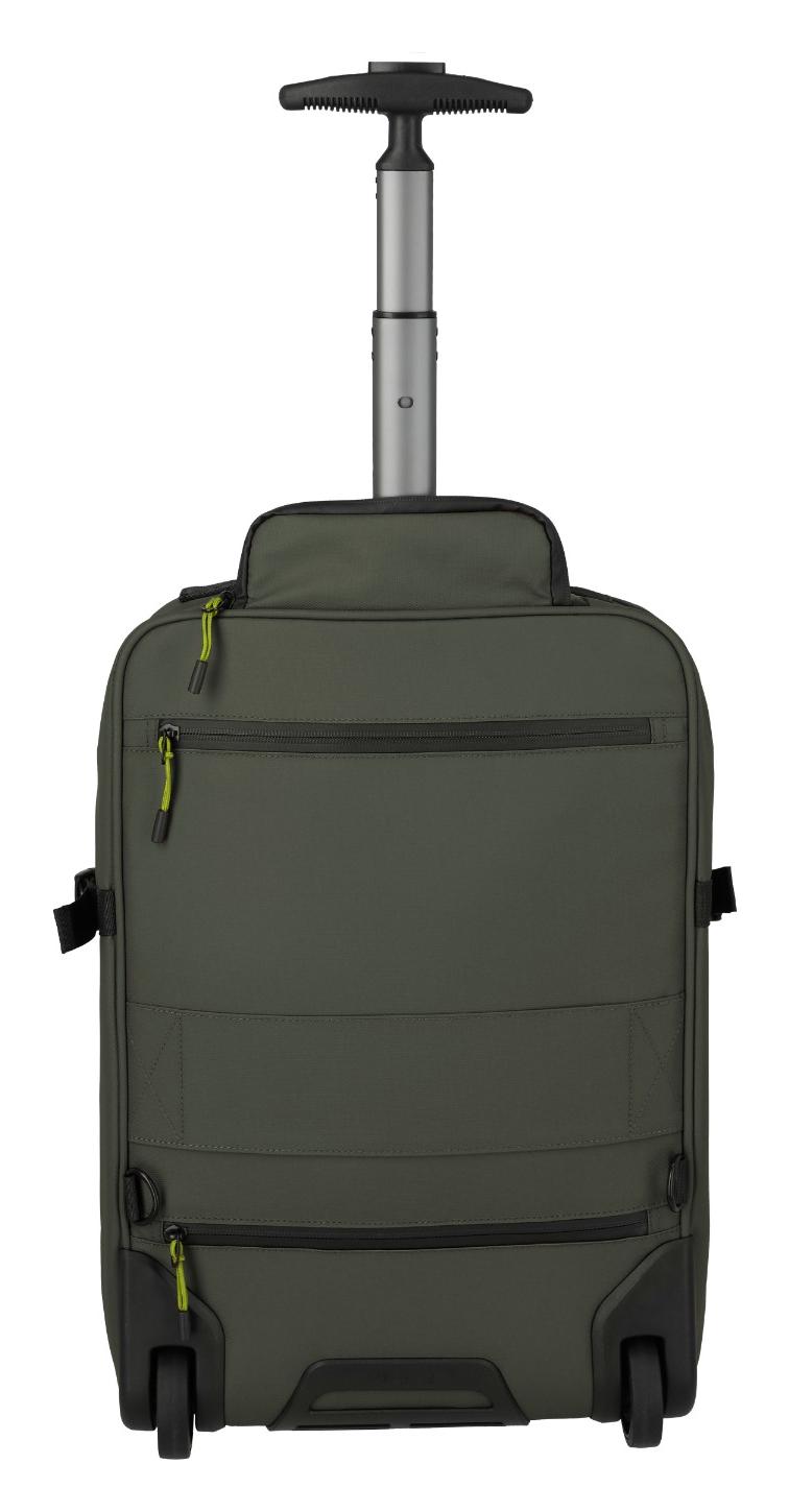 Cestovní batoh na kolečkách Travelite Briize se postará o to, abyste nemuseli celou tíhu vašeho nákladu nosit na svých bedrech. Když pro vás bude už moc těžký, jednoduše odejmete kryt koleček, postavíte batoh na zem, schováte ramenní popruhy, vysunete teleskopickou rukojeť a užijete si cestu bez zbytečné zátěže. Batoh je vyroben z kvalitního polyesteru s PU zátěrem – tarpaulinu, který odolá nepřízni počasí a zároveň se snadno čistí. Jeho rozměry vám umožní vzít si jej jako příruční zavazadlo na palubu letadla a vnitřní kapsy a přihrádky se postarají o dokonalou organizaci vaší výbavy, a to včetně notebooku.