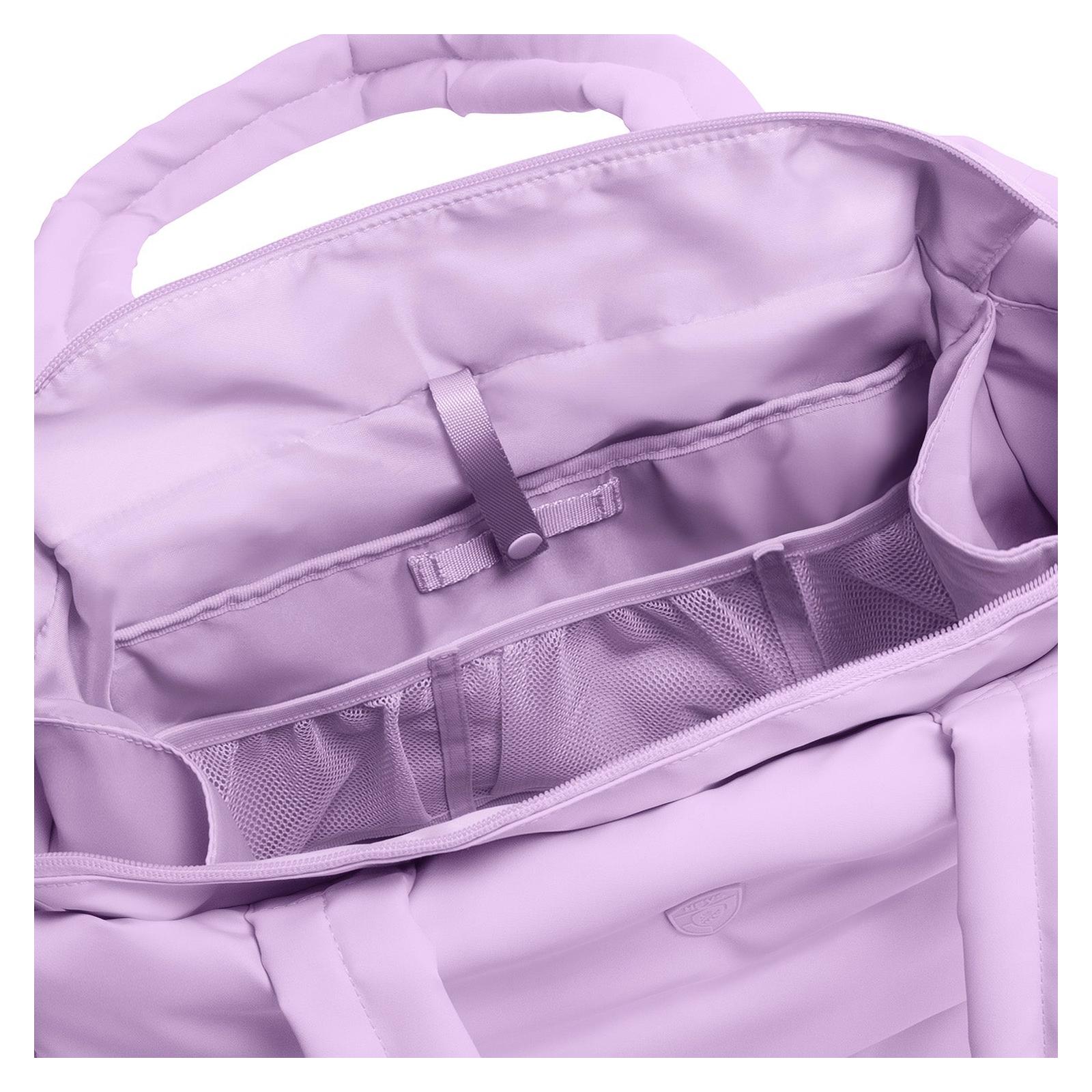 Okořeňte své každodenní aktivity i cestování nadčasovým vzhledem a užitečnými funkcemi! Moderní prošívaná dámská taška Heys The Puffer Travel Tote skvěle poslouží jako stylová kabelka, která vám usnadní běžné fungování, i jako palubní taška, která splňuje požadavky na palubní zavazadlo většiny leteckých společností. Materiál vyrobený z luxusně měkkého, lehkého a voděodolného polyesteru s polyuretanovým zátěrem skvěle vypadá a snadno se udržuje. Do prostorné hlavní komory přehledně uložíte 16″ notebook, osobní věci, kosmetické potřeby, drobnosti i láhev s vodou. Nechybí ani skrytá horní kapsa s karabinou na klíče a tajná zadní kapsa na zip s integrovaným popruhem umožňujícím nasunutí tašky na madlo kufru. Taška je flexibilní na nošení, má dvě ucha do ruky i na rameno a odnímatelný ramenní popruh, jehož délku si snadno a rychle přizpůsobíte. Heys Puffer Travel Tote je zkrátka praktický pomocník, který pozvedne každou vaši cestu o úroveň výš.