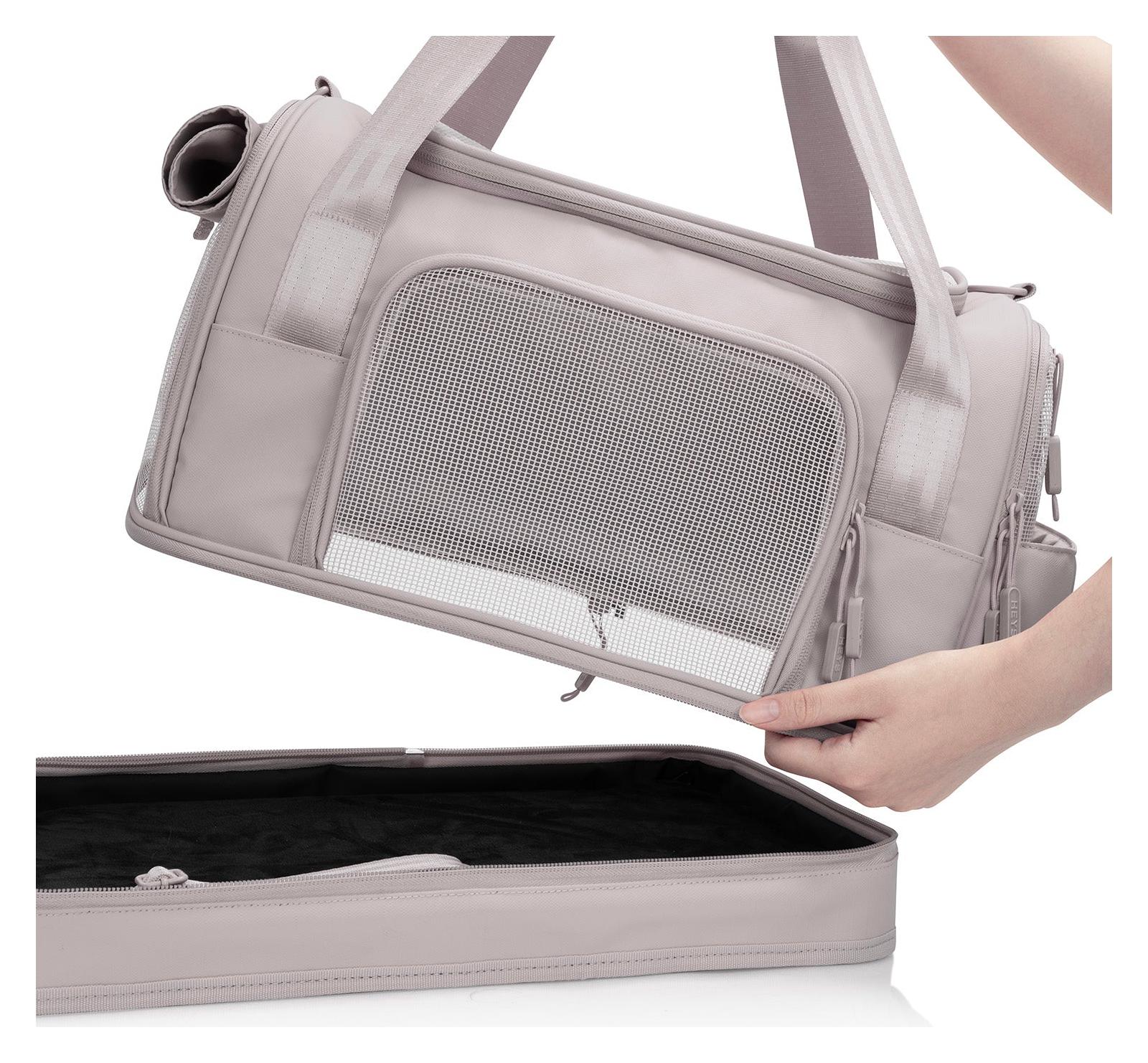 Heys Pawsenger je praktická i pro páníčky. Nabízí řadu kapes na pamlsky, hračky a další nezbytnosti, včetně integrovaného zásobníku na sáčky. Díky chytrému popruhu na zadní straně ji snadno nasunete na rukojeť kufru a uvolníte si ruce. Snadná údržba je zaručena díky vyjímatelné nepropustné základně.