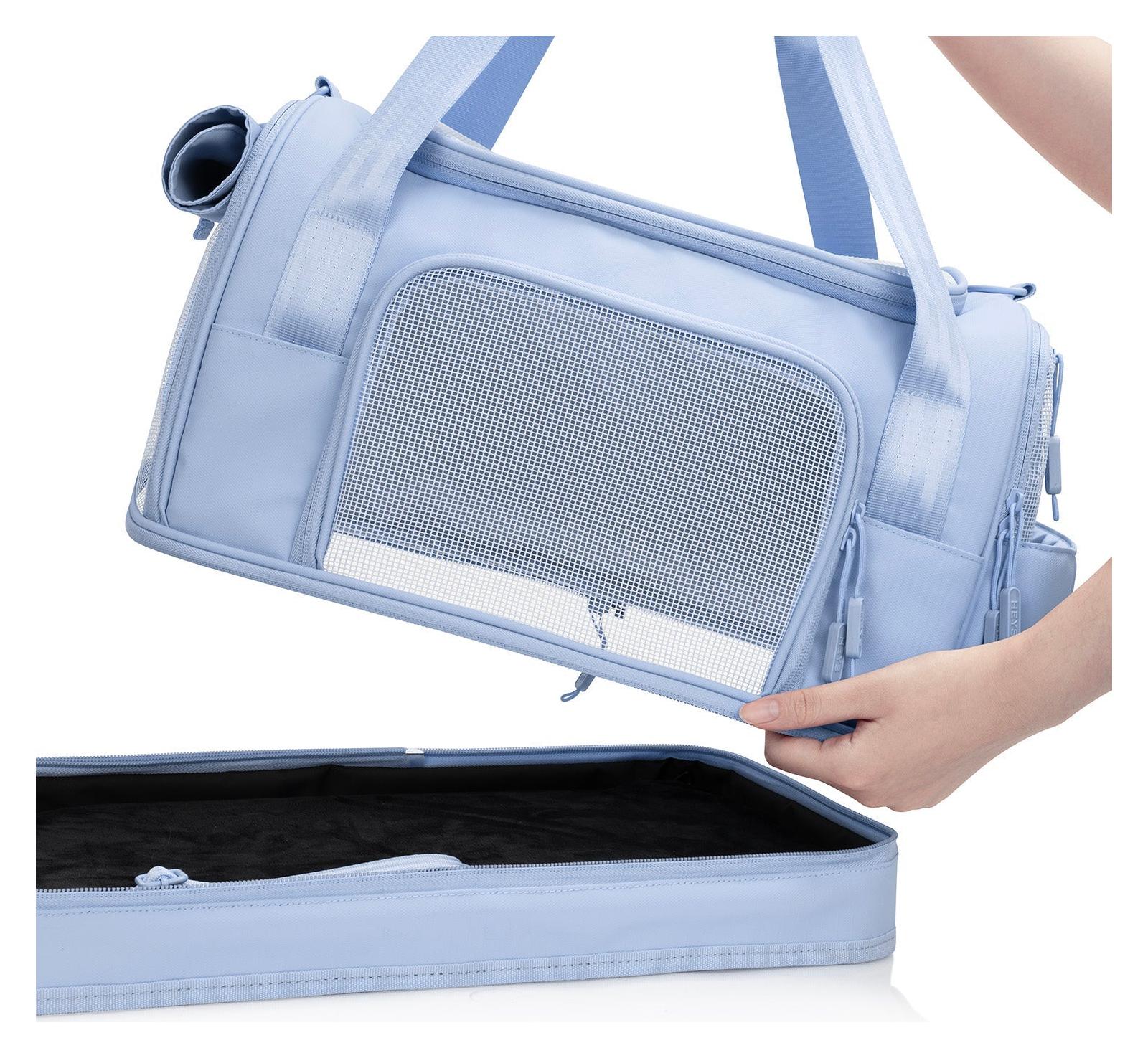 Tato cestovní taška pro mazlíčky je vyrobena z prémiového polyesteru, který je odolný proti poškrábání i vlhkosti. Zaručuje dlouhou životnost a snadnou údržbu. Promyšlený design s velkými síťovanými panely zajišťuje skvělou cirkulaci vzduchu a vizuální kontakt s okolím, váš mazlíček se bude cítit klidně a bezpečně. Uvnitř najdete měkkou sametovou podložku pro maximální komfort během cesty.