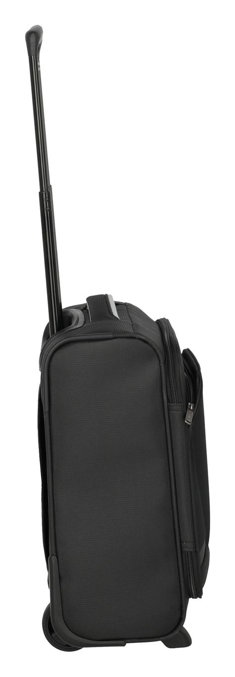 Travelite Jetpack Easy 2 Cabin z odolného a pevného polyesteru s kompaktními rozměry 40 x 30 x 20 cm bude ideální společník na všechny vaše víkendové výlety a pobyty. Extra lehký textilní kufr velikosti S vybavený integrovaným kombinačním zámkem a šikovnými vnějšími kapsami na zip k bezpečnému uložení drobností poskytne dostatek místa na všechno, co s sebou na cestách potřebujete mít, a navíc splňuje předpisy pro kabinová zavazadla leteckých společností EasyJet, Vueling a Wizz Air. Cestování za prací i odpočinkem tak pro vás bude zase o něco snadnější. Uvnitř kufru najdete přihrádku na košile i balicí popruhy, které udrží věci úhledně uložené na svém místě. Pohodlnou jízdu a manipulaci zajistí dvě robustní kolečka, lehká výsuvná rukojeť a pohodlné madlo do ruky, případně i speciální popruh na zadní straně umožňující nasazení na rukojeť většího cestovního kufru. Moderní vzhled a nadčasový design šikovně doplňuje logo a reflexní pruh na přední straně.