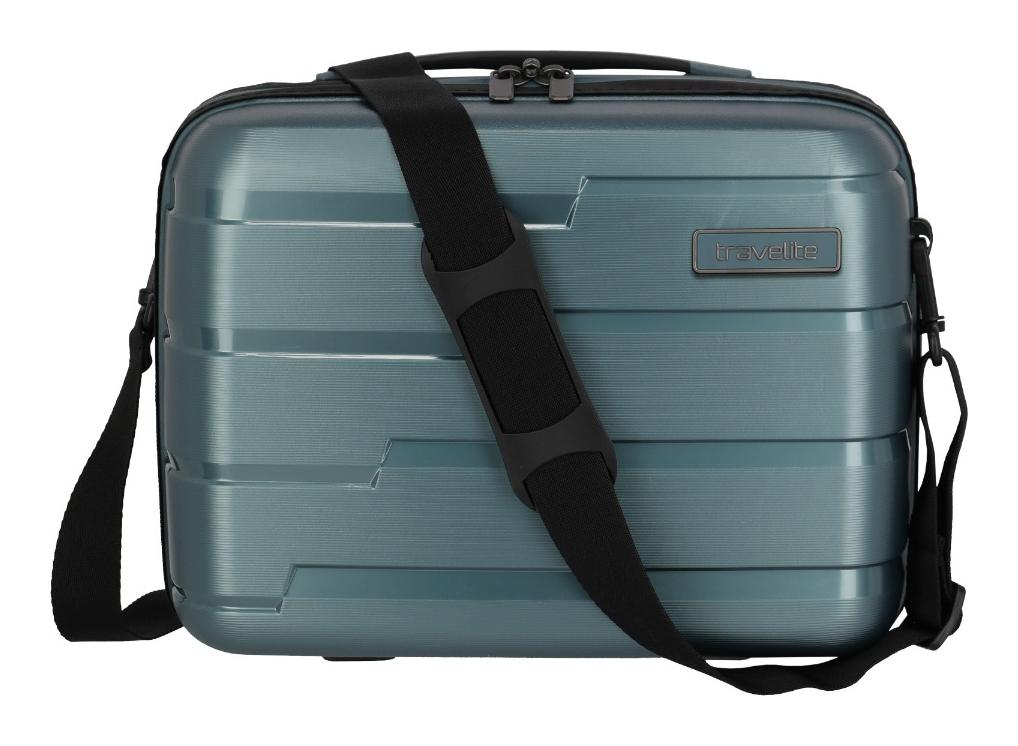 Elegantní kosmetický kufřík z řady Travelite Air Base hravě pojme vaše kosmetické a hygienické cestovní potřeby. Pružná a odolná skořepina z polypropylenu se postará o bezpečnost vaší drahocenné výbavy. Vnitřní chytré uspořádání kapes zajistí přehlednou a snadnou organizaci všech potřeb, od štětce na make-up, po sprchový gel. Kufřík je opatřen odnímatelným popruhem přes rameno a průvlekem na madlo kufru, takže vám maximálně usnadní přenos a cestování.
