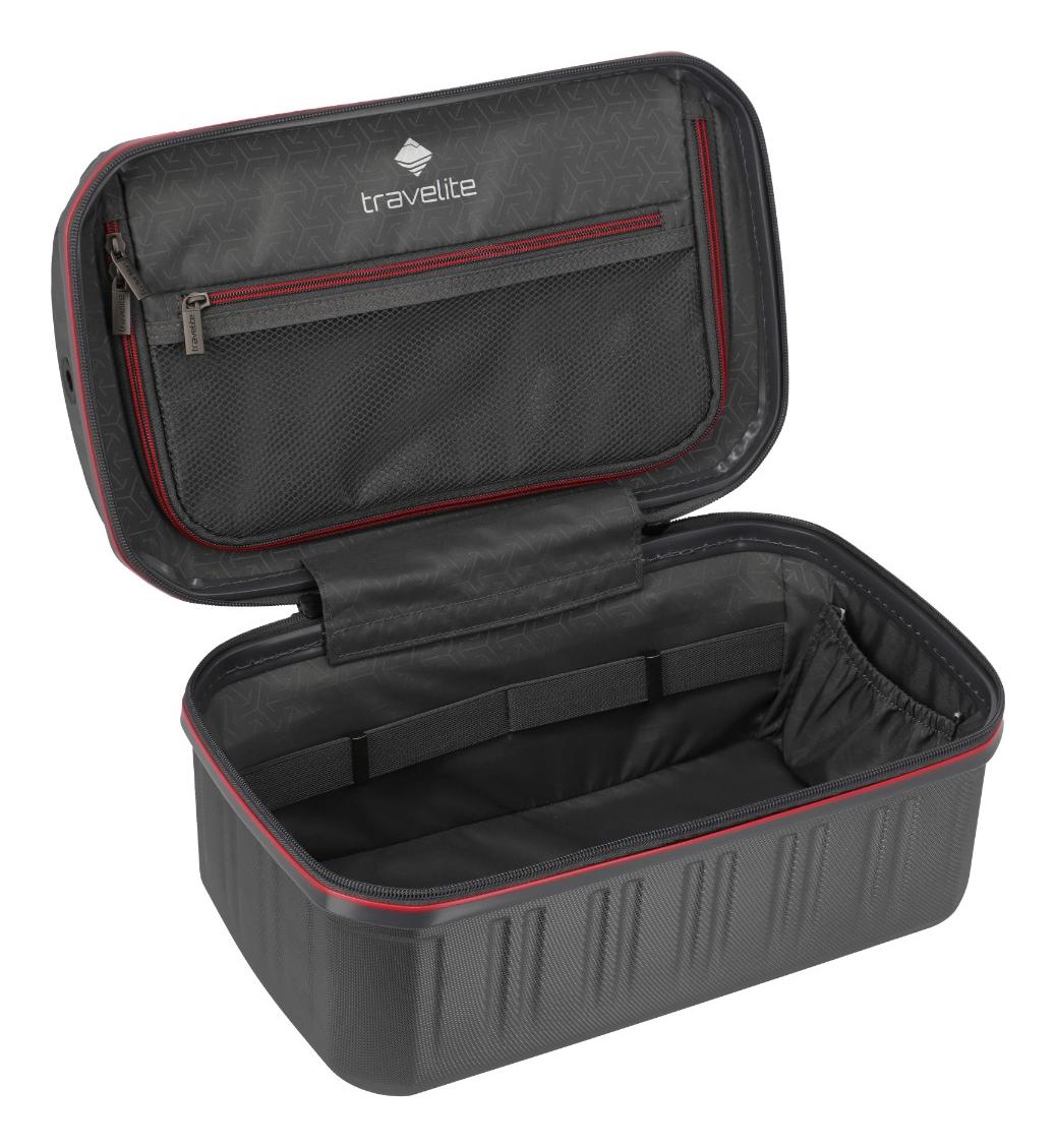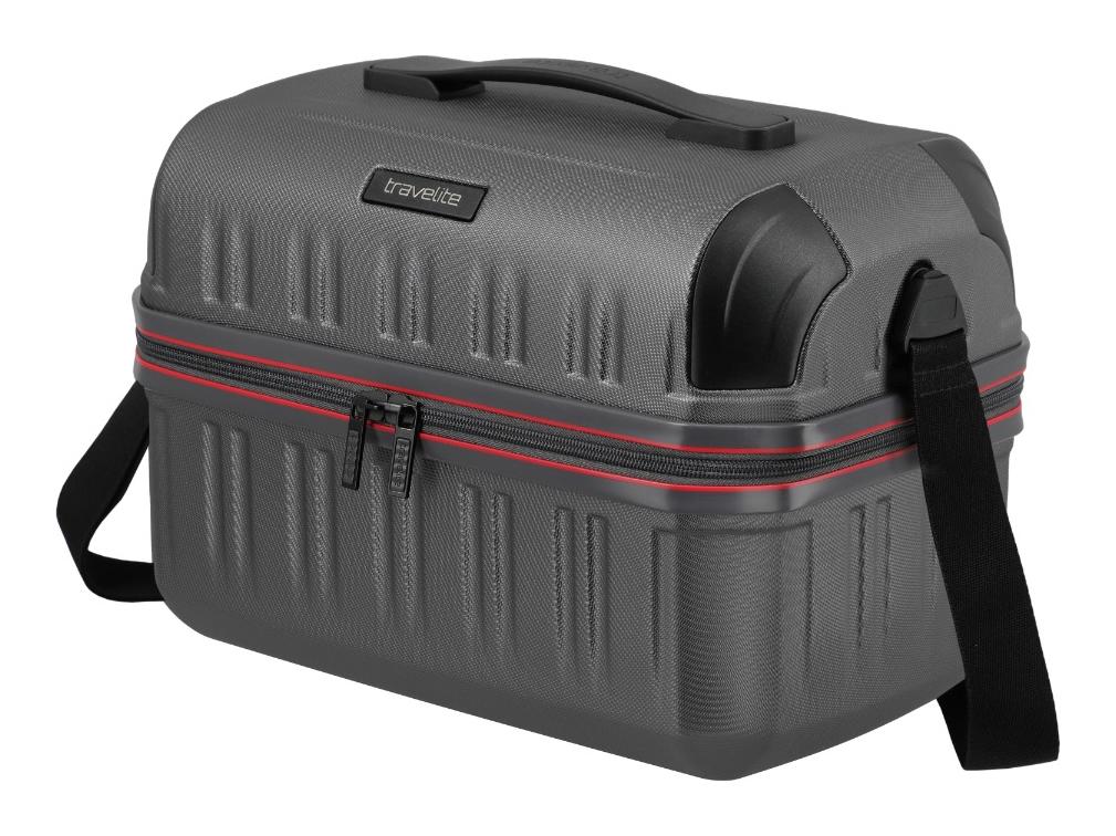 Elegantní kufřík Travelite Dynamiic Beautycase pohodlně pojme vaši kosmetiku, fotoaparát nebo jiné křehké vybavení. Robustní ABS skořepina se zesílenými rohy se postará o bezpečnost vaší drahocenné výbavy. Vnitřní uspořádání zajistí přehlednou organizaci, díky řadě kapes a přihrádek. Kufřík je opatřen odnímatelným popruhem přes rameno a průvlekem na madlo kufru, takže vám maximálně usnadní přenos a cestování.