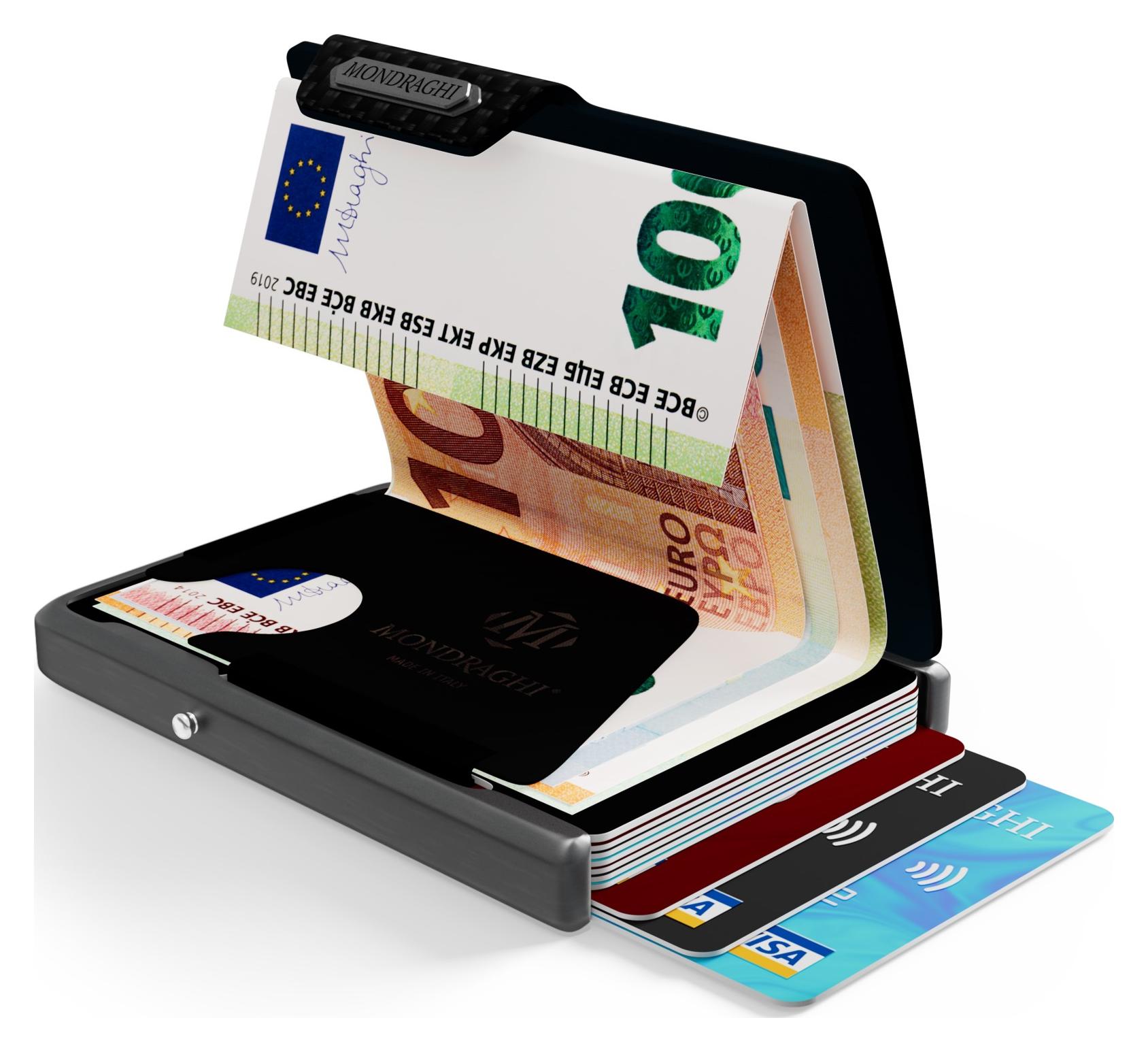 Platíte-li často a rádi bezhotovostně kartou, objemná peněženka plná mincí, bankovek a karet napěchovaná v kapse saka či kalhot už není in. Kombinace kovového držáku na karty s dokonale zpracovanou hovězí kůží dodává peněženkám Mondraghi originalitu, eleganci a nádech luxusu, který si může dopřát každý, kdo chce mít denně pod palcem bezpečí svých financí, dokladů i svůj osobitý styl. Peněženka se pohodlně vejde do každé kapsy, je lehká a praktická stejně jako její intuitivní používání. Kvalitní ruční zpracování navíc zajistí skvělý vzhled a dlouhou životnost.