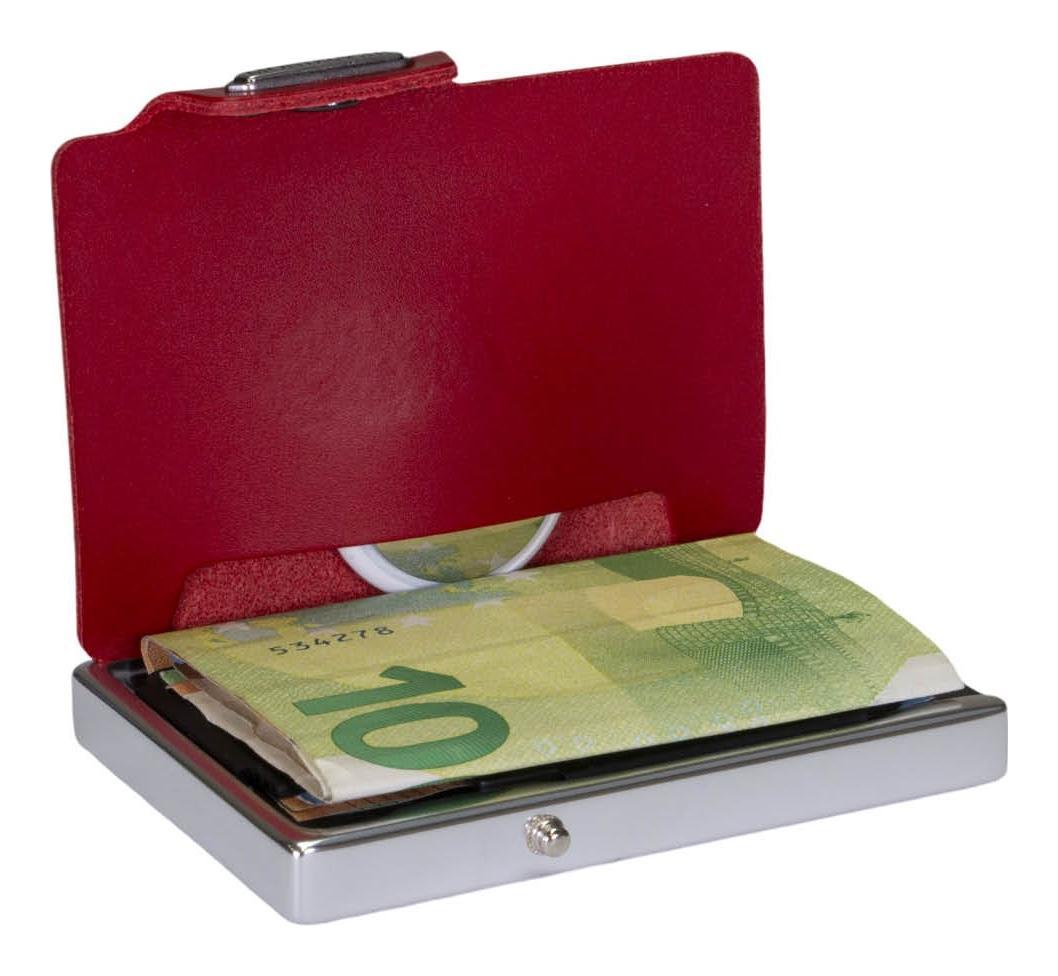 patentovaný klip na bankovky s výřezem na prst a 360° RFID a NFC ochranou blokující nežádoucí načítání čipů karet