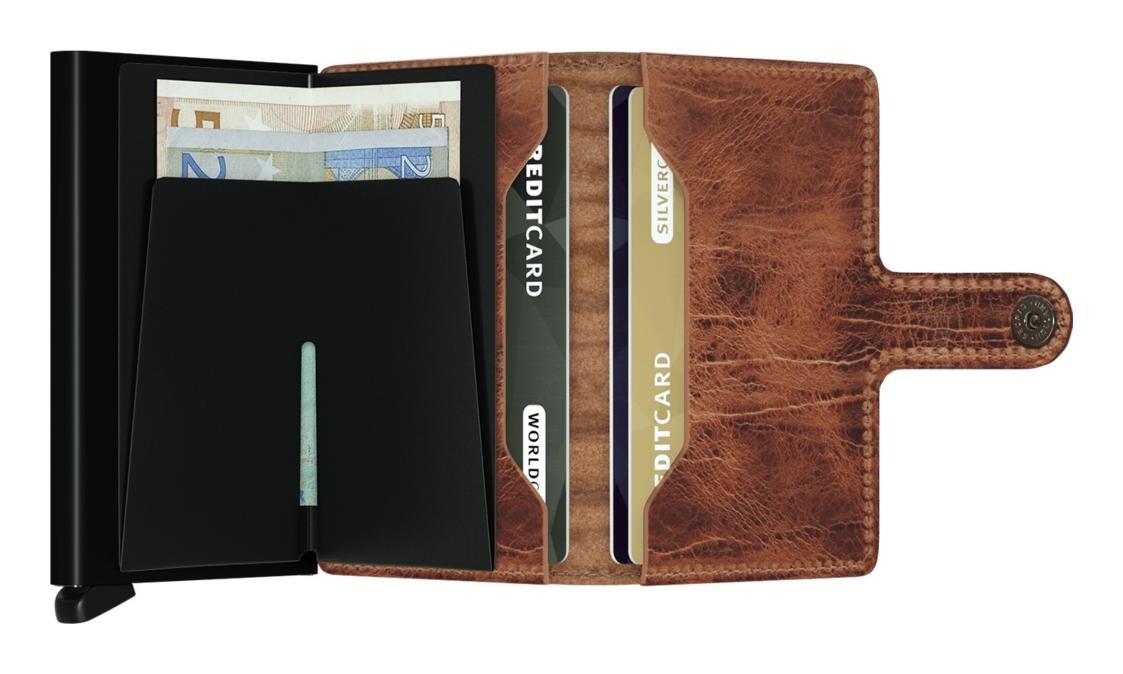 Miniwallet je všestranná peněženka, která je kompaktní co do velikosti, avšak překvapí úložnou kapacitou. Patentovaný mechanismus umožňuje okamžitý přístup k vašim kartám díky jednomu jednoduchému pohybu. Hliníková vrstva chrání karty nejen před ohýbáním či prasknutím, ale také před nežádoucí bezdrátovou komunikací. – prostor pro 4 embosované či 6 plochých karet – oddíl pro 4 extra karty – prostor pro bankovky, vizitky i účtenky – vyrobeno z evropské hovězí usně