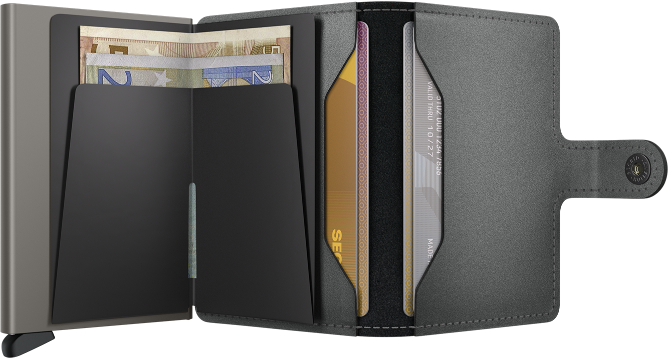 Srdcem peněženky je pevné hliníkové pouzdro, které spolehlivě chrání vaše karty před ohnutím, zlomením i nechtěným bezdrátovým skenováním díky integrované RFID ochraně. Unikátní patentovaný mechanismus vám umožní jediným plynulým pohybem vysunout karty vějířovitě ven. Okamžitě tak máte přehled a přístup k té pravé.