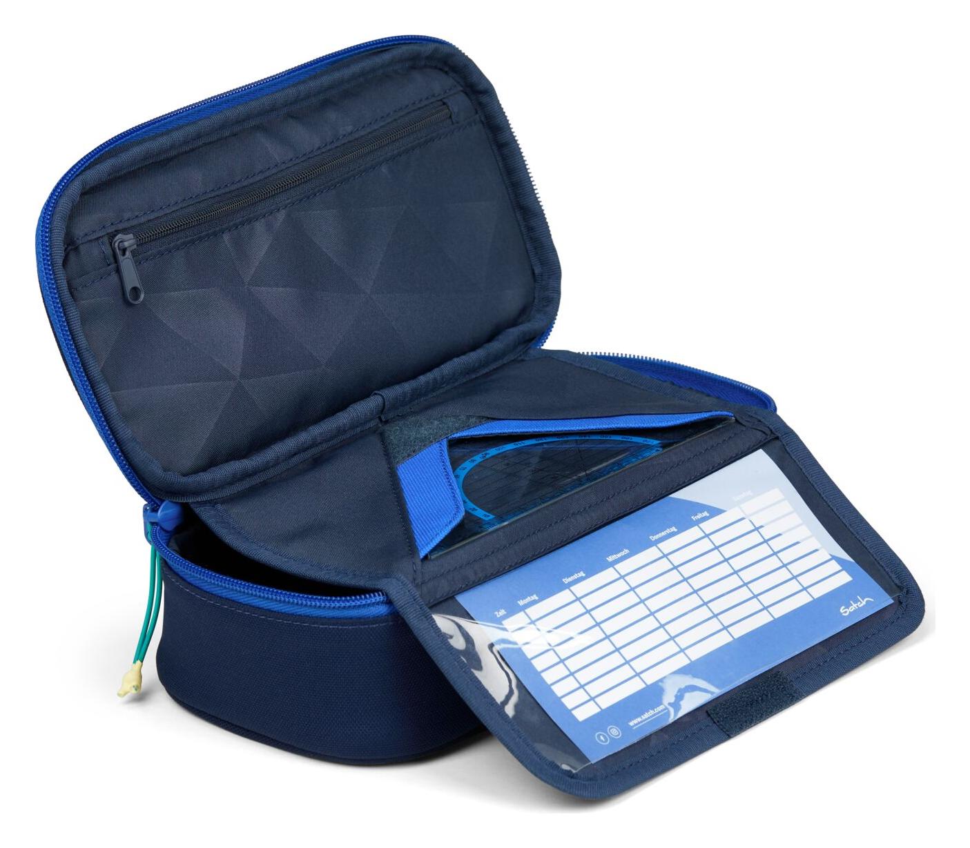 Udržet pořádek v tužkách, perech a dalších psacích potřebách může být hračka s penálem Satch Pencil Box. Tento penál je navržen pro maximální přehlednost a organizaci. Jeho hlavní devizou je praktická výklopná klopa s poutky, která zajistí, že nejoblíbenější psací potřeby budou vždy úhledně srovnané a okamžitě po ruce. Samozřejmostí je i speciální kapsa na trojúhelník a malá kapsička na zip pro drobnosti. Prostorná hlavní komora pak pohodlně pojme vše ostatní, jako jsou nůžky, lepidlo či zvýrazňovače. Stejně jako ostatní produkty značky Satch je i tento penál vyroben z recyklovaných PET lahví a jeho design perfektně ladí se školními batohy. Satch Pencil Box je tak víc než jen penál – je to chytrý organizér pro každého školáka.
