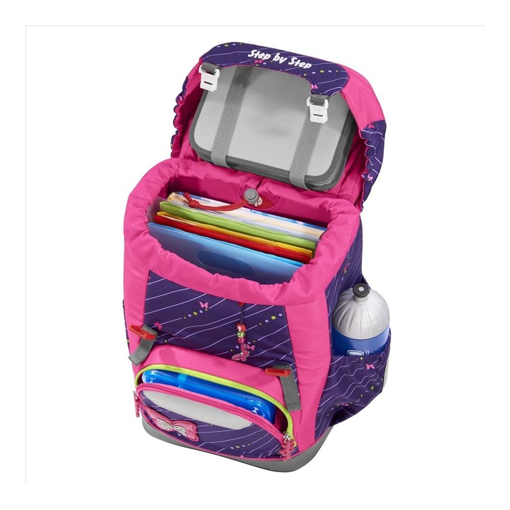 Školní batoh Step by Step Grade je navržen s ohledem na potřeby malých školáků. Ergonomický zádový systém s integrovaným otočným mechanismem Easy grow umožní plynulé výškové nastavení ramenních popruhů. Batoh tedy poroste s vaším dítkem. Esovitě tvarované ramenní popruhy společně s bederním a hrudním popruhem rozloží hmotnost batohu mezi bedra a ramena tak, aby zajistily pohodlné každodenní nošení. Prostorná komora s intuitivním zavíráním na přezky pojme učebnice, sešity, penál i další pomůcky. Izolovaná přední kapsa je ideální na uložení svačiny či krabičky s obědem. Do velkých bočních kapes se vejde i větší láhev na pití. Děti navíc potěší magnetické obrázky, které lze libovolně měnit.