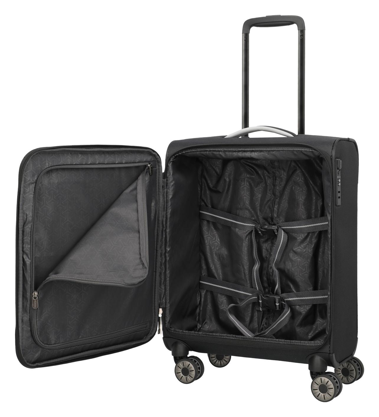 Patříte mezi cestovatele, kteří často létají, a proto potřebují lehký a kompaktní kufr do letadla? Čtyřkolečkový palubní kufřík velikosti S Travelite Jetpack Multi Light 4 Cabin s rozměry 55 x 40 x 20 cm splňuje předpisy pro palubní zavazadla řady leteckých společností (Condor a Ryanair za příplatek). Optimální velikost zajistí dostatek místa na běžnou výbavu na pár dní strávených mimo domov, kterou si díky oddílu na košile a části s kompresními popruhy přehledně sbalíte i zabezpečíte proti pohybu uvnitř zavazadla. Interiér navíc bezpečně uzamknete pomocí integrovaného kombinačního zámku. Pohodlí na cestách vám dopřejí také přední kapsy, do nichž se vejdou nezbytné drobnosti. Čtyři otočná kolečka usnadní jízdu v terénu, a díky reflexnímu pruhu vás bude dobře vidět i v šeru, dešti anebo mlze.